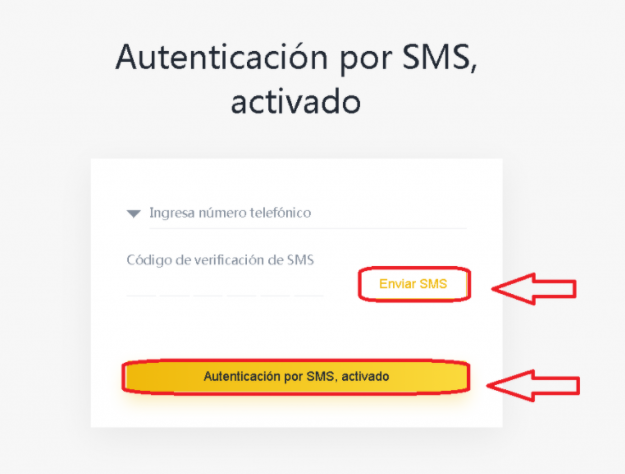 Luego de colocar el número de teléfono, se debe hacer clic en la opción de Enviar SMS, al recibir el código de confirmación, se debe hacer clic en Autentificaciónpor SMS, activado.