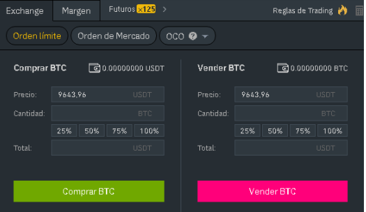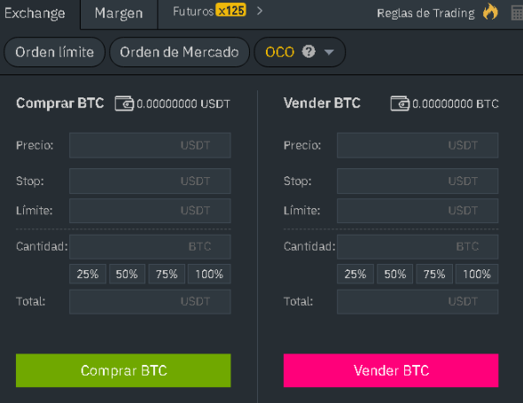 A continuación hacemos la explicación de las distintas órdenes que se pueden ejecutar en esta plataforma, estas son Market, Limit, Stop Loss conocida como Stop Limitada, e incluso la función OCO (One Cancels The Other).