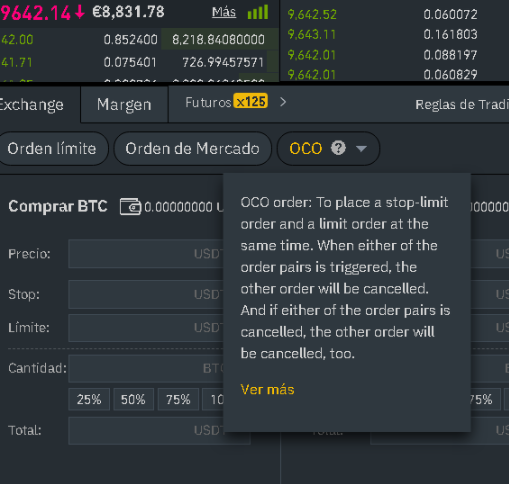 Para los que empiezan a utilizar el trading de Binance, se les hace muy difícil entender éste concepto. No obstante si ya se conocen las funciones Limit y Stop Limit, ya se debe entender de forma correcta de qué se trata la orden OCO.